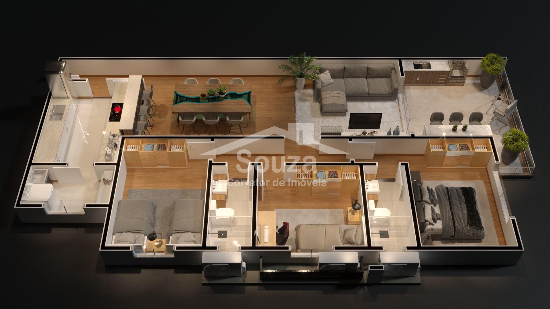 - 3 dormitórios, sendo 1 suíte;